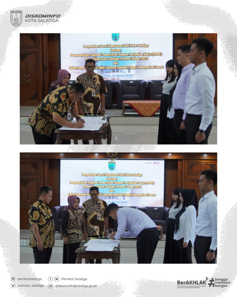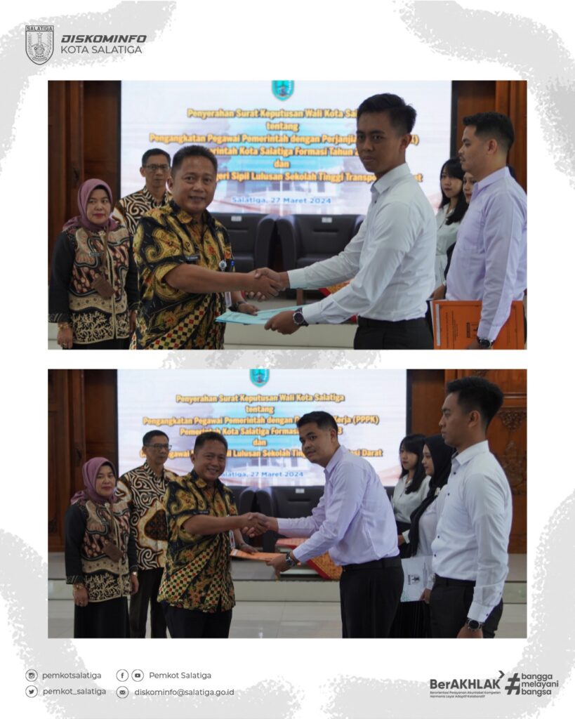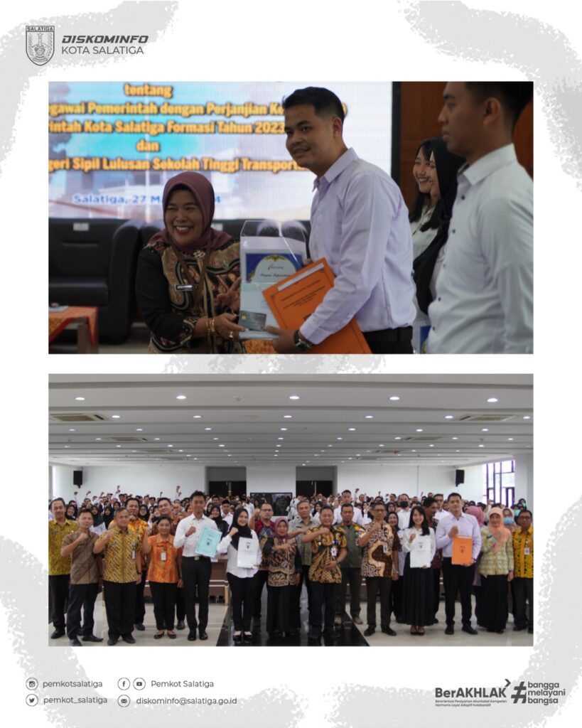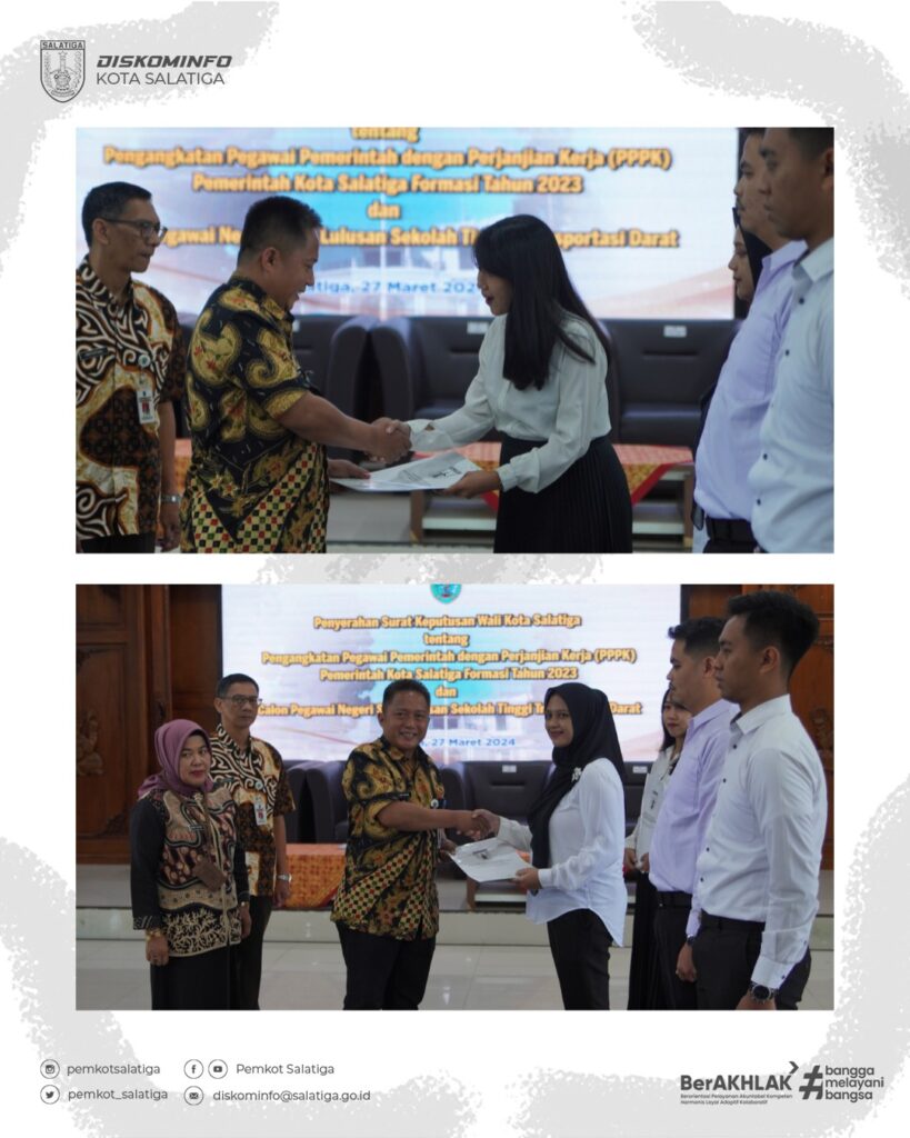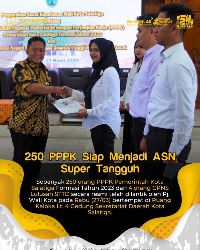 Pj. Wali Kota Salatiga, Yasip Khasani, S.IP., M.M., mengingatkan kepada ASN yang baru saja dilantik untuk dapat menjalankan Amanah dan tanggung jawab dengan sebaik-baiknya. “Oleh karena itu Bapak dan Ibu, untuk PPPK maupun CPNS ini diharapkan mampu menjalankan tugas dan fungsinya secara professional, bertanggung jawab, berdedikasi tinggi, serta amanah sebagai abdi masyarakat dan senantiasa berkomitmen memberikan pelayanan prima sesuai dengan core value BerAKHLAK. Sehingga nanti selama masa evaluasi saya akan memasang telinga lebar-lebar, bagaimana perilaku panjenengan semua sebagai ASN. Tak kalah penting, panjenengan harus terus meningkatkan kapasitas dengan melakukan pelatihan-pelatihan baik yang formal maupun informal.”