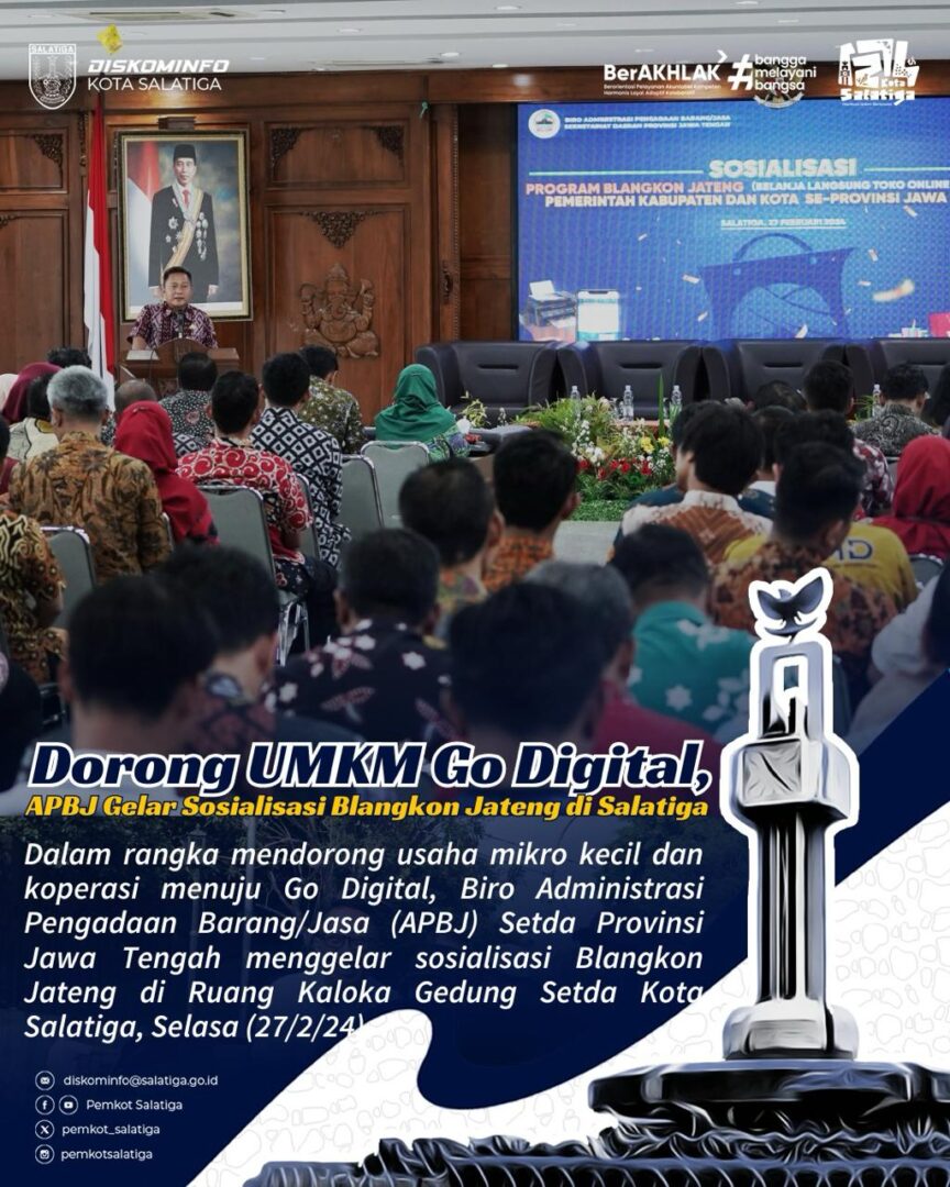Yasip Khasani, M.M selaku Pj. Wali Kota sekaligus Kabiro APBJ menyambut baik kegiatan yang digelar dan menyampaikan bahwa Jawa tengah menempati peringkat pertama transaksi melalui toko daring untuk kategori Provinsi Kabupaten dan Kota. “Perlu kami sampaikan bahwa saat ini Provinsi Jawa tengah menempati peringkat pertama transaksi melalui toko daring untuk kategori Provinsi Kabupaten dan Kota dengan total transaksi mencapai Rp.1.740.369.149.378 (data update tanggal 23 Februari 2024 pada dashboard Toko Daring LKPP)”. Ia juga menerangkan hingga 23 Februari 2024, Kabupaten dan Kota yang telah bergabung dalam Program Blangkon Jateng sebanyak 25 Kab/Kota dengan total penyedia sebanyak 10.335. hasil tersebut tercatat dengan rincian 4.998 penyedia berbentuk badan usaha dan 5.337 penyedia perorangan serta sudah terdapat sebanyak 438.448 produk yang telah tayang.