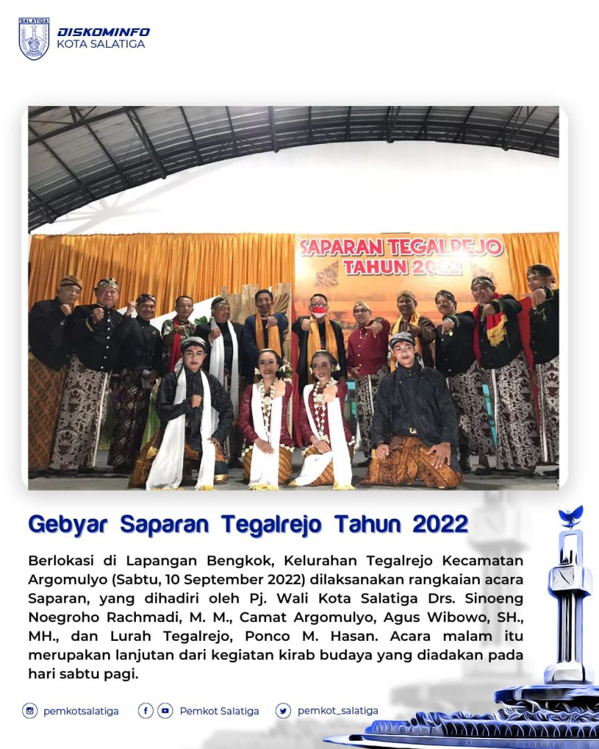 Dalam sambutannya, Pj. Wali Kota Salatiga menyampaikan dukungannya pada kegiatan-kegiatan yang digelar oleh masyarakat. “Saya mendukung semua yang telah disiapkan masyarakat, semua bentuk kearifan lokal, semua bentuk yang bisa mendukung baik seni budaya, perekonomian, dan juga hal-hal yang menyangkut tentang event kepariwisataan yang muncul dari masyarakat.”