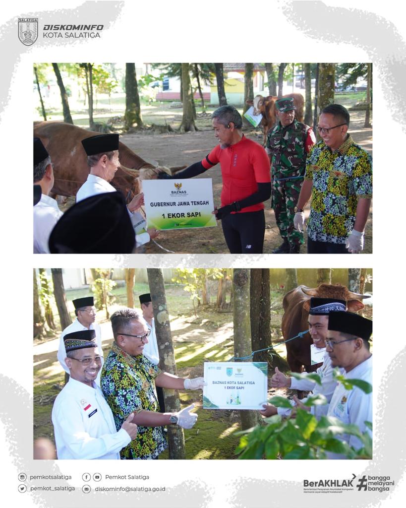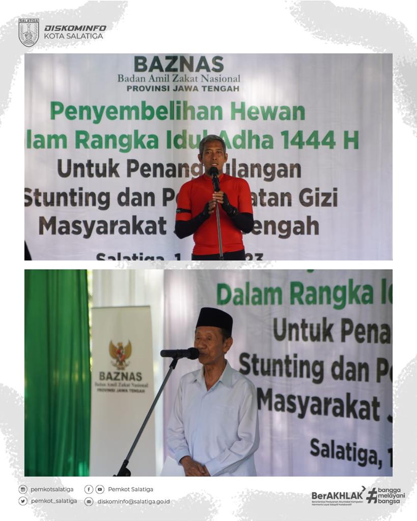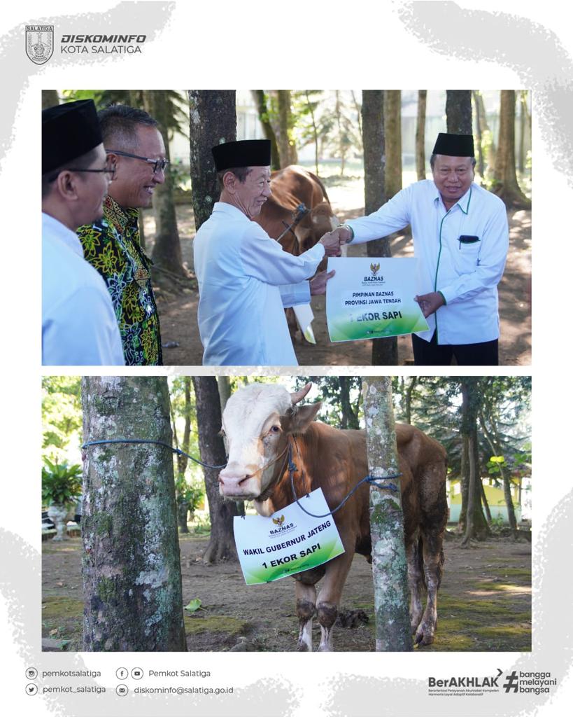 Baznas Provinsi Jawa Tengah menyelenggarakan kegiatan Penyembelihan Hewan Kurban dalam rangka Iduladha 1444 H di Rumah Pemotongan Hewan (RPH) Kota Salatiga pada Hari Sabtu pagi (01/07). Sebanyak 75 ekor sapi yang terdiri dari 5 ekor hewan kurban dan 70 ekor bantuan dari Baznas Provinsi Jateng dan Kabupaten/Kota siap disembelih dan diolah. Jumlah hewan kurban tahun ini meningkat dari tahun sebelumnya yang berjumlah 51 ekor sapi. 90% dari total daging sapi tersebut nantinya akan diolah menjadi kornet yang menghasilkan +/- 81600 kaleng, kemudian sisanya akan diolah menjadi rendang dan menghasilkan +/- 4200 kaleng dengan berat 200 gram per kaleng. Untuk kepala, kulit dan jeroan (minus hati dan paru) akan diserahkan kepada lembaga-lembaga keagamaan, yatim piatu dan beberapa masjid di Kota Semarang, Salatiga dan Boyolali. Pj. Wali Kota Salatiga, Sinoeng Nugroho Rachmadi menyampaikan bahwa daging tersebut selain akan diarahkan untuk dhuafa dan fakir miskin, akan digunakan pula untuk penanganan stunting di Kota Salatiga. Mengingat target Pemkot Salatiga di Tahun 2024 mencapai 0% kasus stunting. Sumarno selaku Sekda Provinsi Jateng yang turut hadir dalam kegiatan tersebut menyampaikan apresiasi dan terimakasih kepada Baznas Provinsi Jateng yang selalu ikut serta dalam membantu menangani problem di Jawa Tengah seperti penanggulangan kemiskinan dan kasus stunting. “Daging ini nantinya akan diawetkan di kaleng, tentu saja dengan metode ini pendistribusian akan lebih fleksibel dan tidak terikat waktu,” ujar Sumarno. Beliau menambahkan hal ini juga menjadi bagian dan upaya dari pengentasan kemiskinan dan stunting khususnya di Provinsi Jawa Tengah.