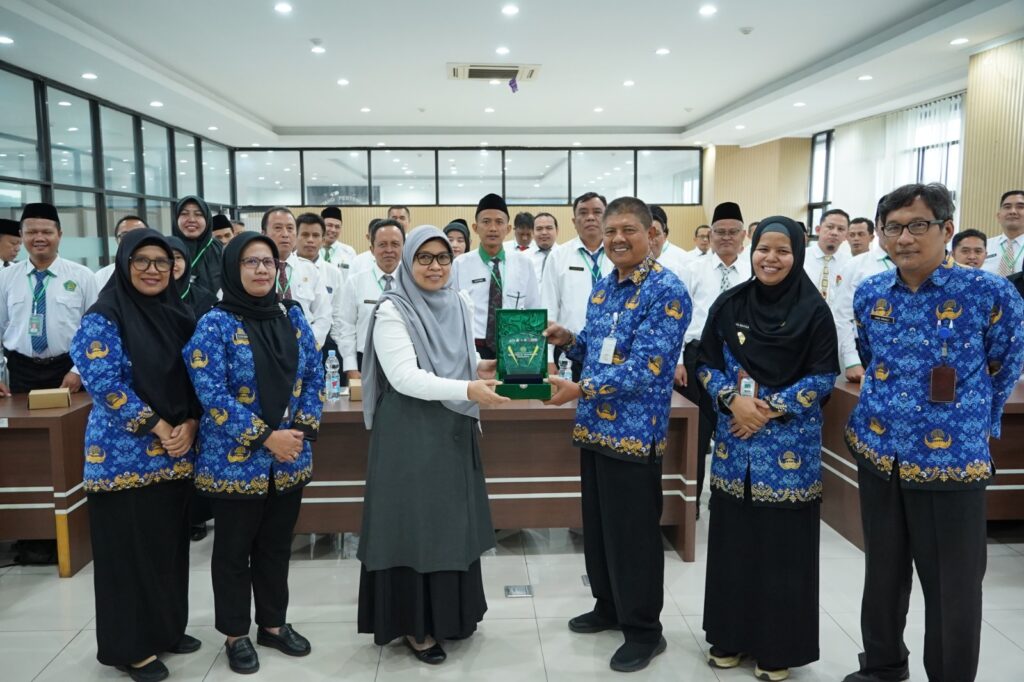 Dinas Komunikasi dan Informatika Kota Salatiga menerima kunjungan studi lapangan terkait Inovasi Layanan Publik dari Balai Diklat Keagamaan Semarang pada Selasa (17/06). Pada kesempatan tersebut hadir Kepala Diskominfo beserta jajarannya, Lurah Randuacir, serta rombongan studi lapangan. Studi lapangan (Stula) tersebut merupakan salah satu rangkaian dari Pelatihan Kepemimpinan Pengawas Angkatan XXVII Tahun 2025 dengan pola Blended Learning yang dilaksanakan tanggal 21 April – 28 Agustus 2025. Nikmatul Afiah, S.Sos., M.Si selaku pendamping stula menyampaikan bahwa tujuan dari kunjungan kali ini untuk menggali sebanyak mungkin best practice dari organisasi yang dikunjungi, menemukan ide dan gagasan baru yang inovatif dan kreatif, dan belajar dari best practice tentang pengelolaan kegiatan sehingga menjadi inspirasi untuk program yang dikelola peserta melalui proyek perubahan. Kepala Diskominfo, Budi Prasetiyono, M.Si menyambut baik kehadiran rombongan stula dan menjelaskan terkait inovasi-inovasi layanan publik yang ada di Diskominfo Kota Salatiga. Kemudian Lurah Randuacir memberikan paparan terkait Kelurahan Cantik sebagai inovasi yang berkolaborasi dengan Diskominfo Salatiga. Acara dilanjutkan dengan sesi diskusi, penyerahan cenderamata dan foto bersama.