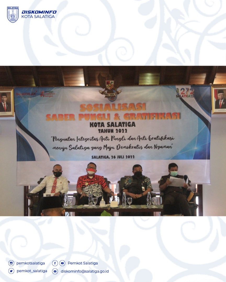 Pj. Wali Kota Salatiga berkesempatan membuka Sosialisasi Saber Pungli dengan penuh harap supaya Kota Salatiga bersih dari Pungli dan Gratifikasi. “Bapak /Ibu sekalian, Bekerjalah tim saber pungli dengan sebaik-baiknya, saya mohon dengan kelodangan penggalih panjenengan membantu kami untuk bekerja dengan sebaik-baiknya, agar mandat dari sang Maha Kuasa pada kita di dunia bisa berjalan sesuai apa yang kita harapkan”.