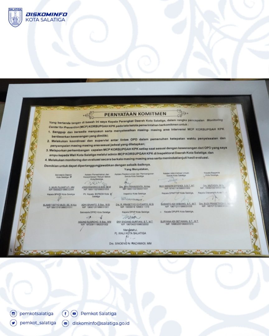 Kemudian sesi terakhir dilakukan penandatanganan komitmen dalam rangka Monitoring Center for Prevention (MCP) Korsupgah KPK pada tata kelola pemerintahan yang berisi sebagai berikut: