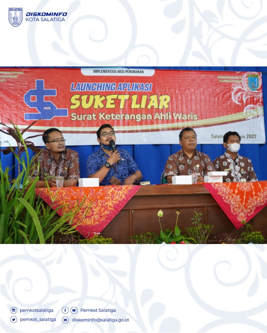 Dalam acara launching aplikasi Suket Liar hadir Asisten Pemerintahan dan Kesejahteraan Rakyat Sekda Kota Salatiga, Camat Argomulyo, Sekretaris Dinas Kominfo dan Lurah Cebongan. Peresmian ini ditandai dengan menekanan tombol mouse pada aplikasi, dilanjutkan dengan sosialisasi aplikasi Suket Liar oleh Kasie Pemtrantibum Kelurahan Cebongan dan sosialisasi persyaratan pelayanan surat keterangan waris oleh Staff Kecamatan Argomulyo.