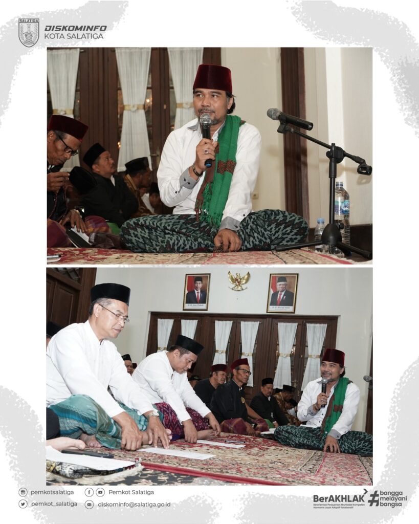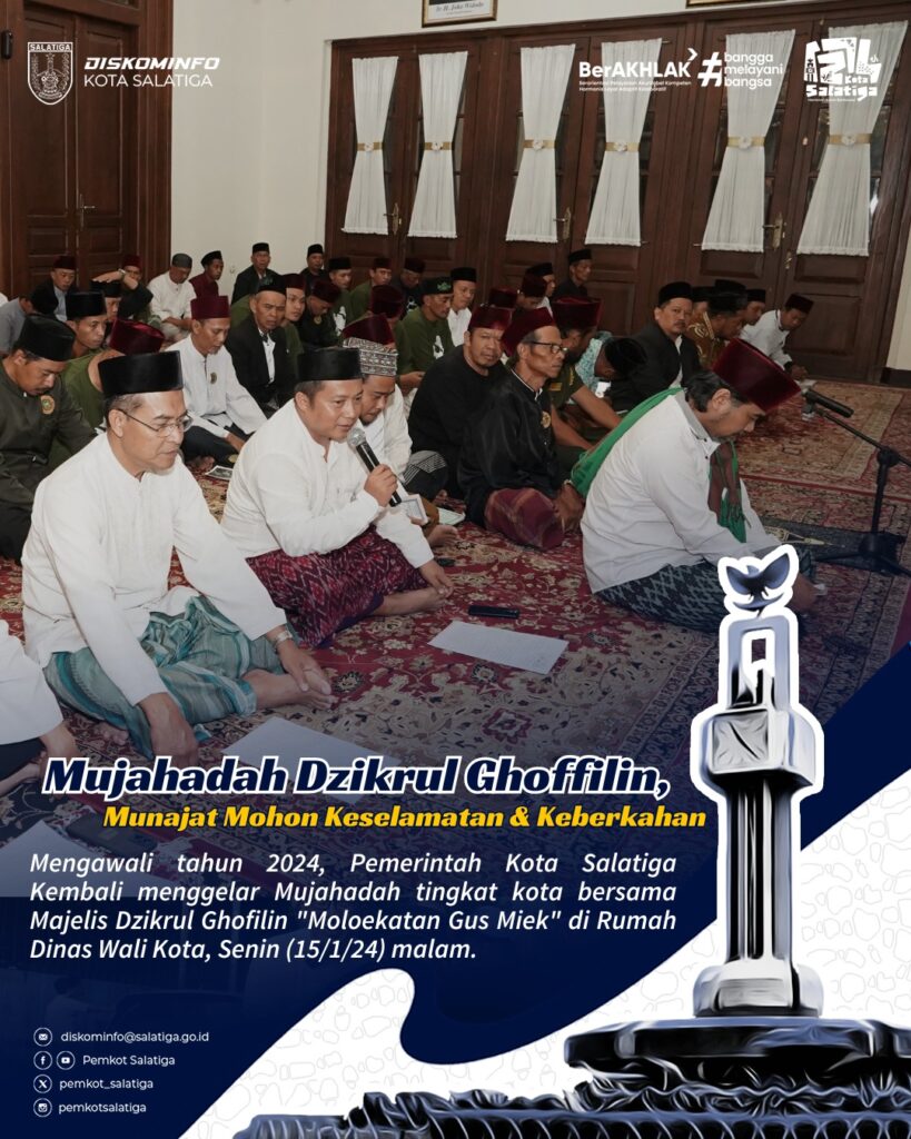 “Kito podho-podho muslim nggih ten mriki, monggo sareng-sareng syiaripun ditingkataken lan dipunniataken. Tentu kita saling merangkul sesama muslim baik NU, Muhammadiyah dan muslim yang lain kemudian kita selaraskan. Kita buat Salatiga ini menjadi contoh, terhadap umat agama lain saja kita sangat toleran kenapa sesama muslim tidak. Ini nanti yang mengawali panjenengan semuanya”. Pihaknya juga berharap silaturahmi yang terjalin menjadi awal yang baik untuk Salatiga dan sekitarnya. Mujahadah dipimpin langsung oleh K.H Mukarom, S.H dengan melantunkan Zikir Ghoffilin. Dzikir Ghofilin merupakan ritual dzikir yang diwariskan oleh KH. Hamim Jazuli atau yang dikenal dengan Gus Miek putra dari KH. Djazuli Utsman dengan rangkaian tawassul, sholawat, istighfar, tahlil, dan doa-doa.