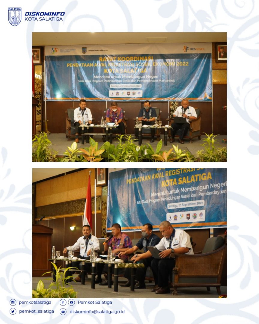 Eddy Supeno selaku Ketua panitia, melaporkan kegiatan yang terselenggara merupakan pertemuan dengan Pemerintah Daerah yang erat kaitannya dengan kegiatan maupun dukungan publisitas Regsosek 2022. “Rapat koodinasi ini merupakan pertemuan dengan jajaran Pemerintah Daerah yang erat dengan kegiatan maupun dukungan publisitas Regsosek 2022. Seperti Kepala Daerah, Forkopimda, Bappeda, Dinsos, Diskominfo, Dinkes, DP3AP2KB, Disdik, Setda, Prokompim serta camat dan lurah se Kota Salatiga”. Ia juga menambahkan, kegiatan yang digelar diikuti oleh 62 orang termasuk panitia.