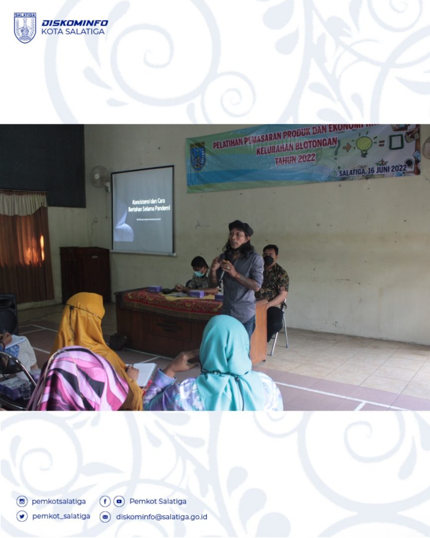 Terkait dengan hal itu, seiring berjalannya waktu dan kasus covid-19 yang semakin melandai, Kelurahan Blotongan menginisiasi pelatihan pemasaran produk dan ekonomi kreatif kepada warga Blotongan. Pelatihan yang dilakukan di Balai Kelurahan Blotongan itu diikuti oleh kurang lebih 35 peserta dan menghadirkan narasumber yang berasal dari Owner Cetul Leatherart dan Dinas Komunikasi dan Informatika (Diskominfo) Kota Salatiga (16/6). Selain untuk memberikan pemahaman mengenai wirausaha, diharapkan dalam pelatihan ini dapat mengikuti perkembangan zaman dengan teknologi yang semakin masif.