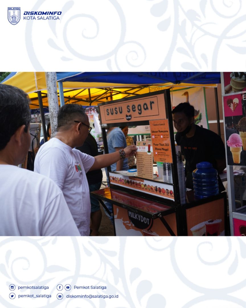 Pj. Wali Kota berkunjung ke halaman Gedung Tennis Indoor untuk meninjau stand-stand partisipan lomba Fun Sport Expo dan stand-stand makanan.