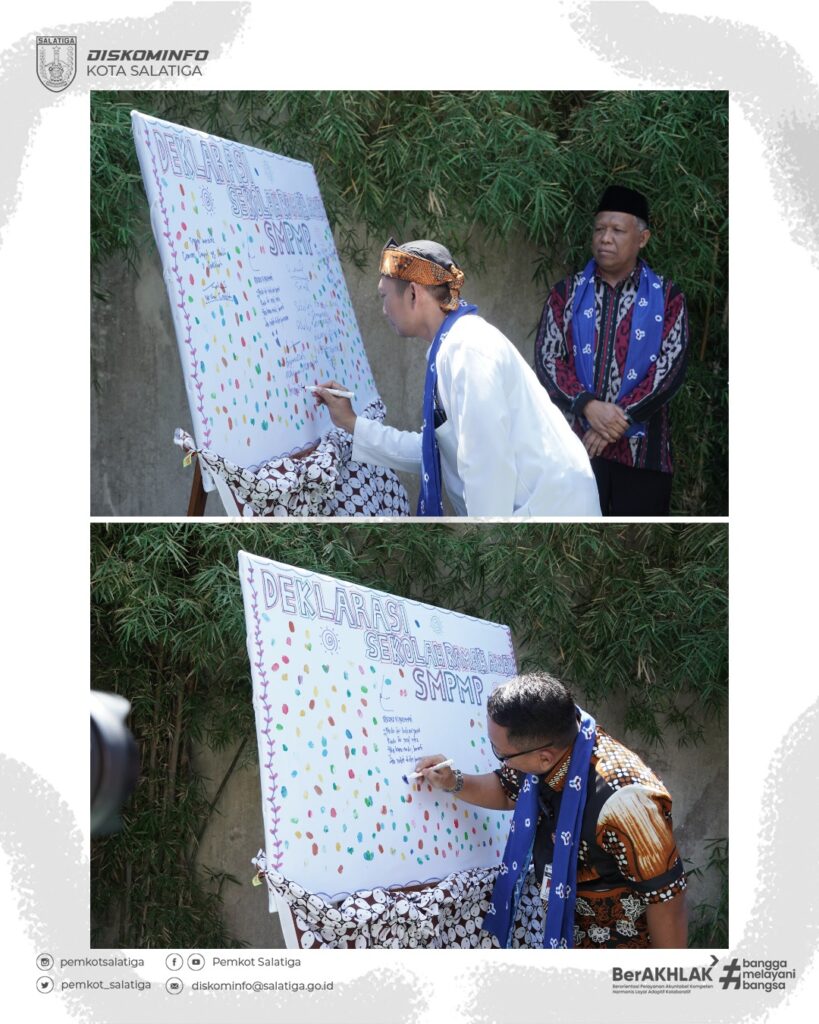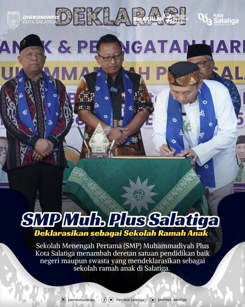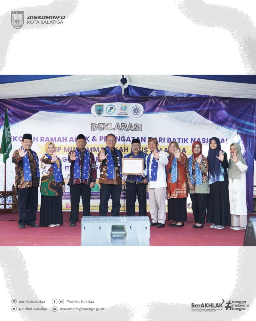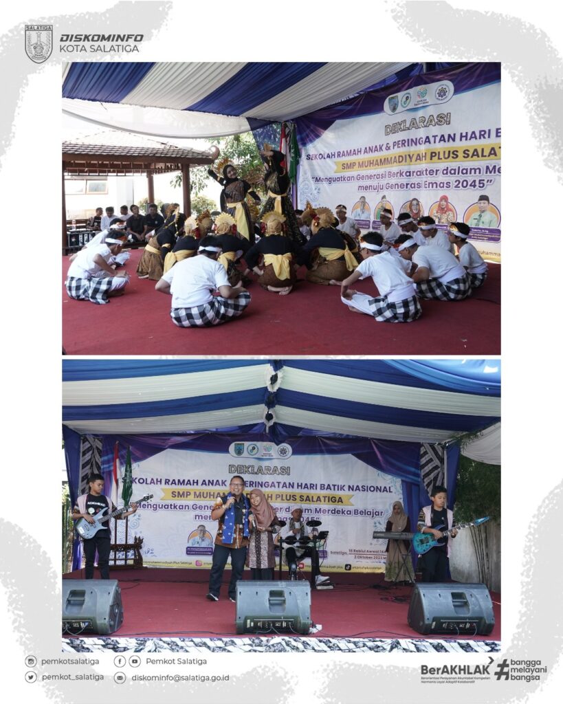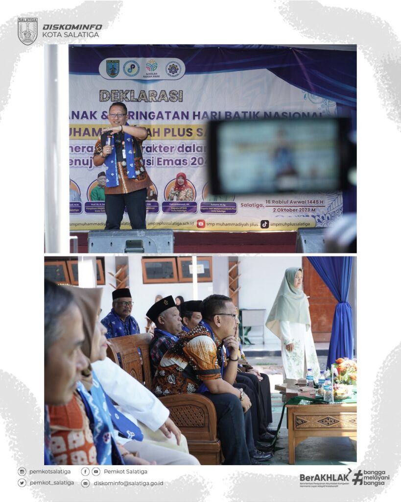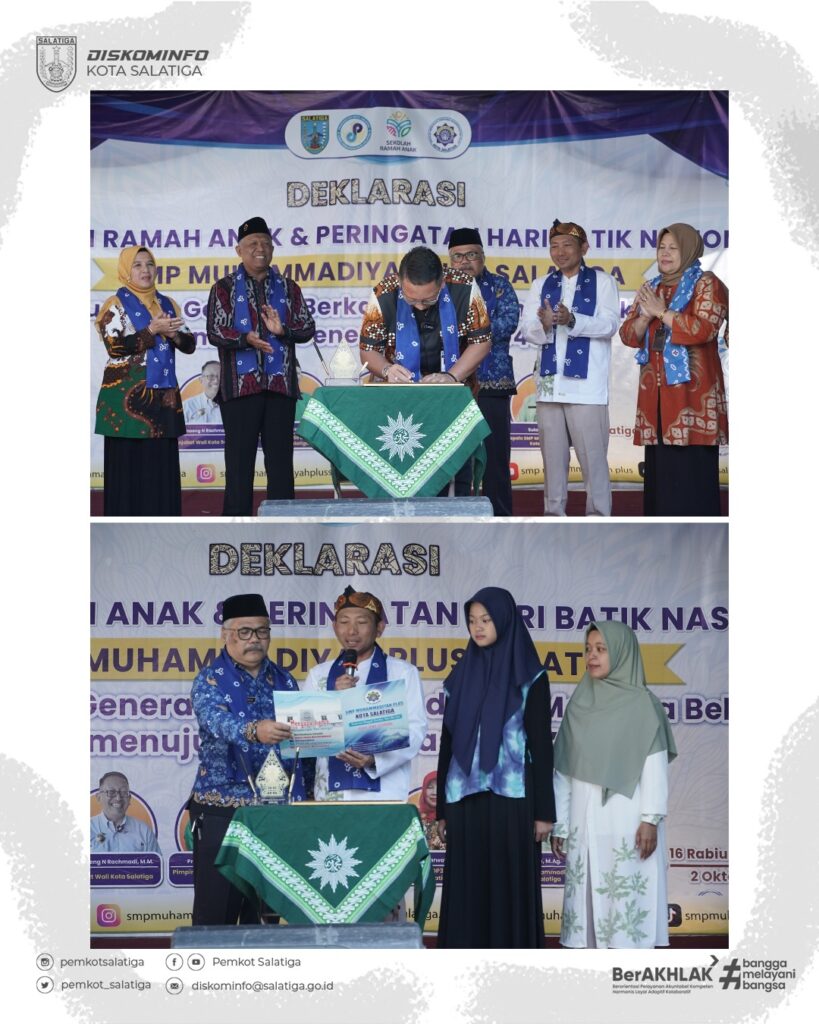 Kepala SMP Muh. Plus, Sutomo, M.Ag dalam sambutannya menyampaikan komitmen dalam mendeklarasikan sekolah ramah anak. “Atas izin Allah SWT, kita bersama-sama mengawal generasi di semua jenjang untuk mencerdaskan anak bangsa. Melalui forum deklarasi ramah anak dan peringatan hari batik nasional ini tentu akan kita dorong karena tantangan kedepan pasti akan lebih berat. Alhamdulillah saat ini kita bisa hadir untuk saling memberikan support dan komitmen dalam mengawal generasi berkarakter dengan semangat merdeka belajar dan insyaallah kami siap untuk mencetak generasi emas tahun 2045”.
