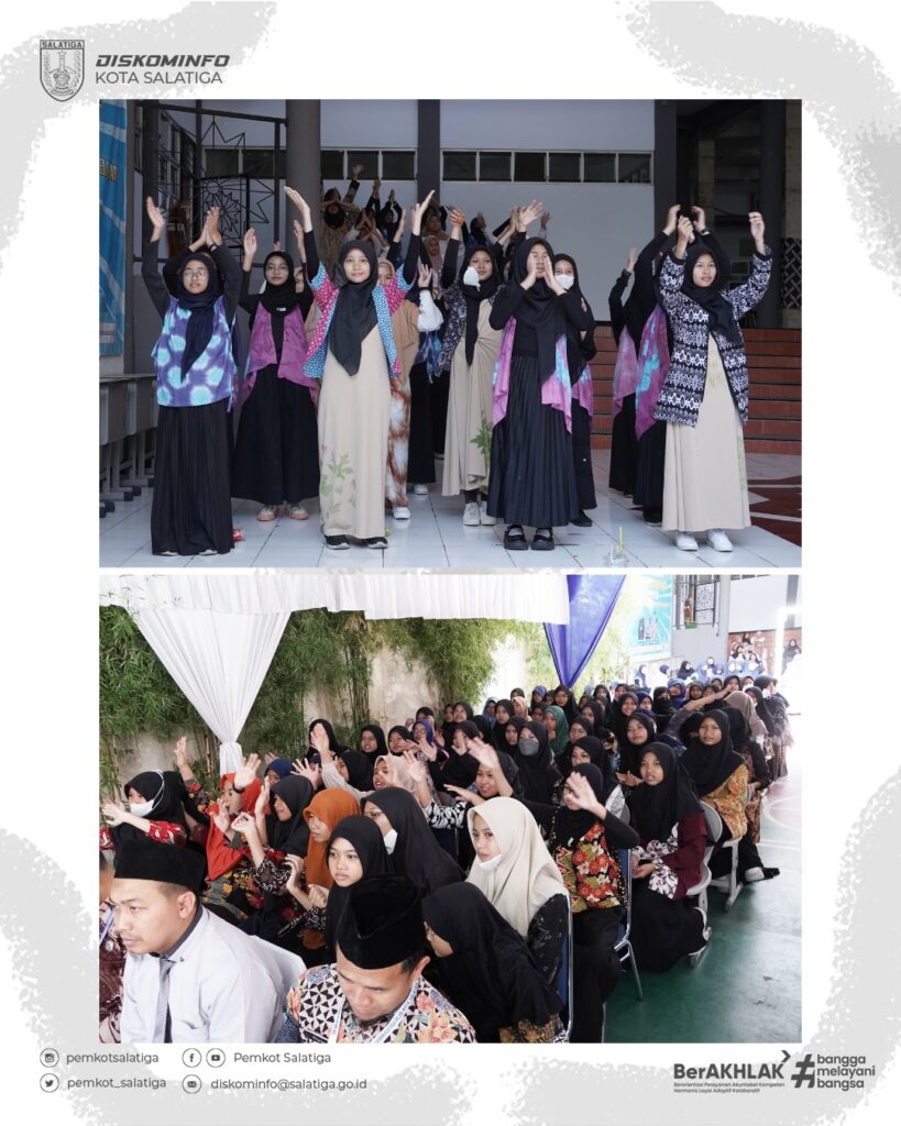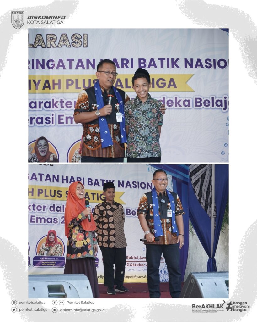 Kegiatan yang digelar di SMP Muhammadiyah Plus, Senin (2/10/23) dirangkai bersamaan dengan peringatan Hari Batik Nasional. Beragam kain, hiasan bahkan lukisan bernuansa batik ditampilkan dalam acara yang mengangkat tema “Menguatkan Generasi Berkarakter dalam Merdeka Belajar menuju Generasi Emas 2045” itu.