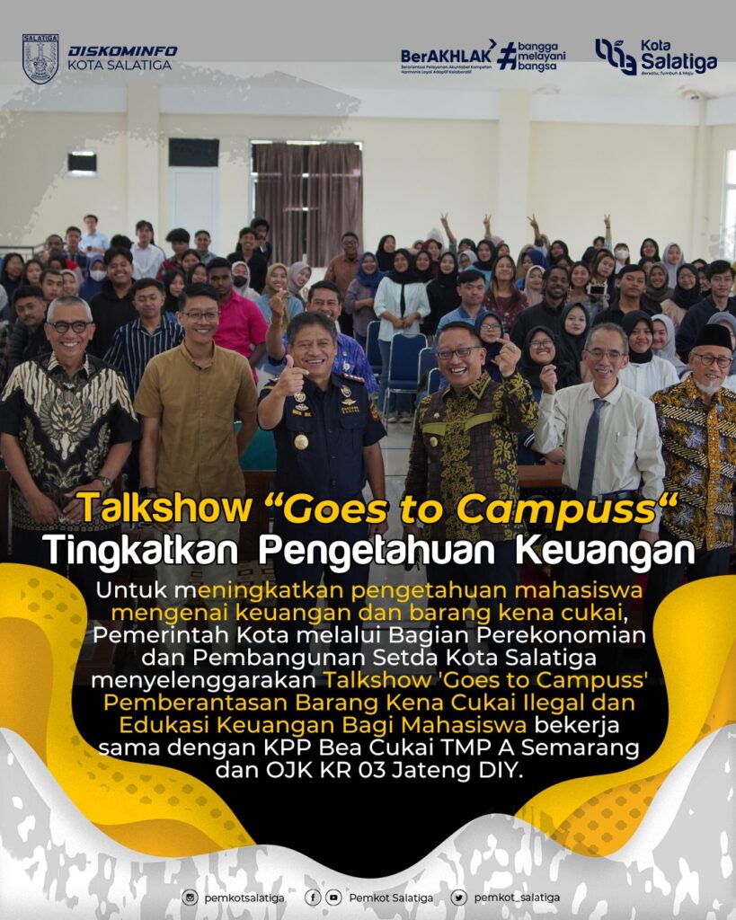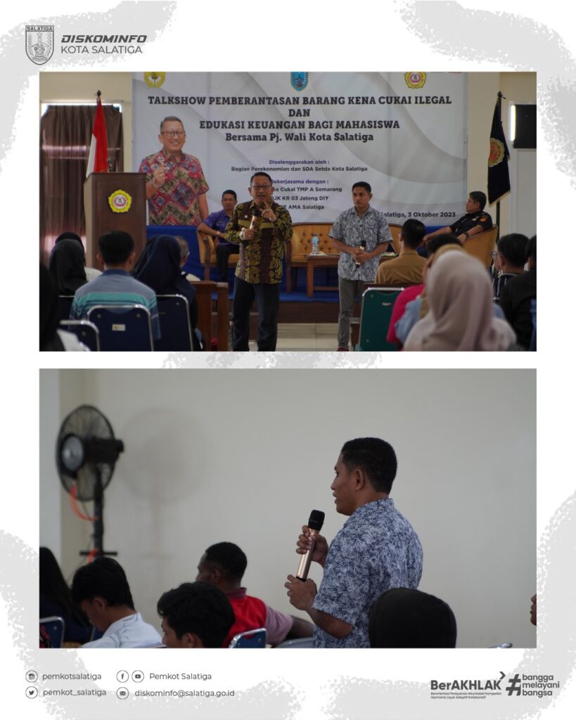 Dalam kesempatan tersebut Pj. Wali Kota Salatiga memberikan key note speech yang kemudian dilanjutkan dengan penyampaian materi atau talkshow oleh Kepala Kantor Pengawasan dan Pelayanan Bea Cukai Tipe Madya Pabean A Semarang, Bier Budy Kismulyanto dengan materi sosialisasi ketentuan di bidang cukai hasil tembakau dan Kepala Sub Bagian Edukasi dan Perlindungan Konsumen OJK Reg 3 Jateng DIY, Tangguh Wicaksono dengan materi edukasi keuangan.