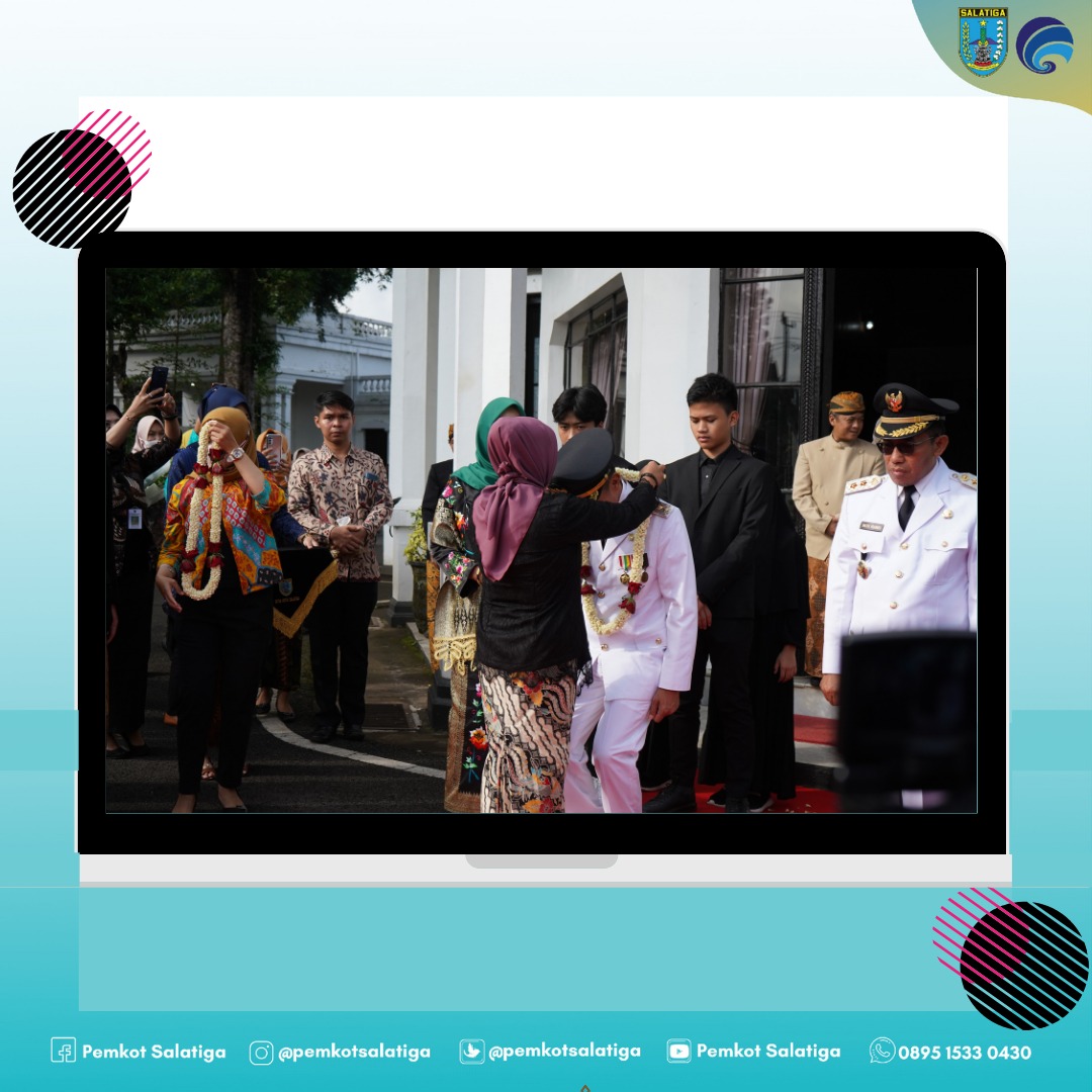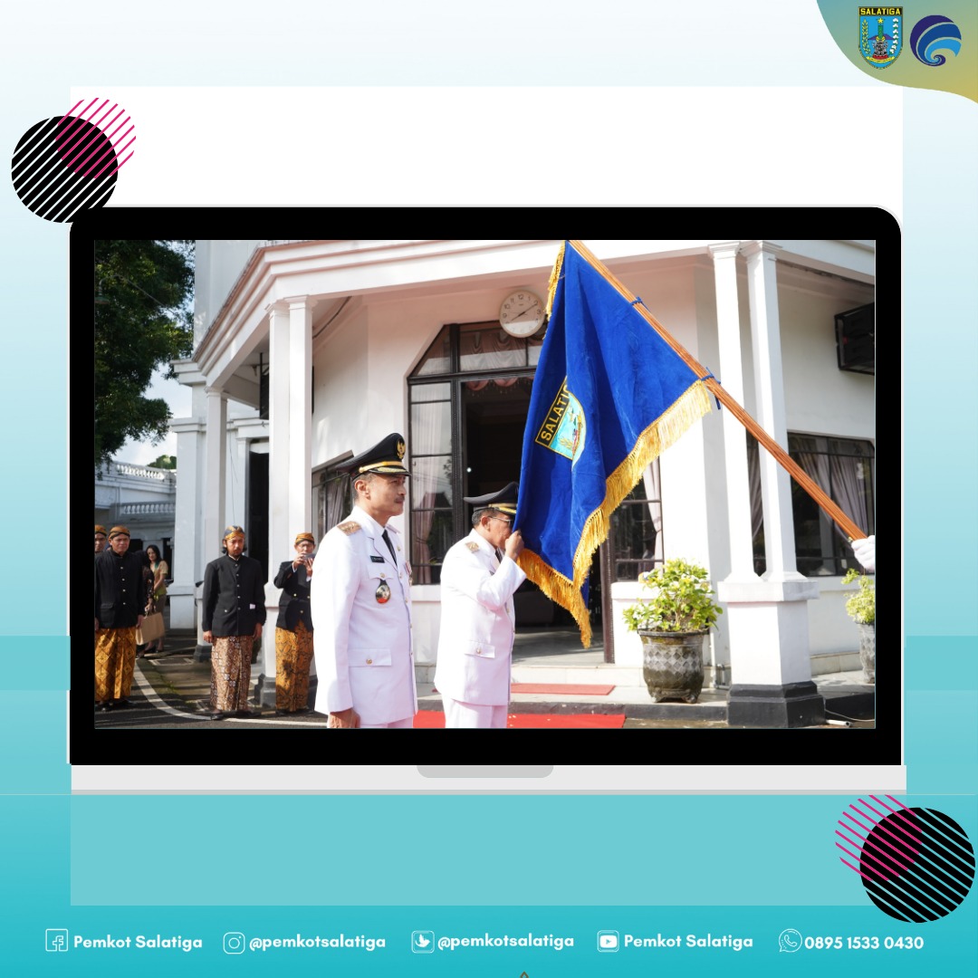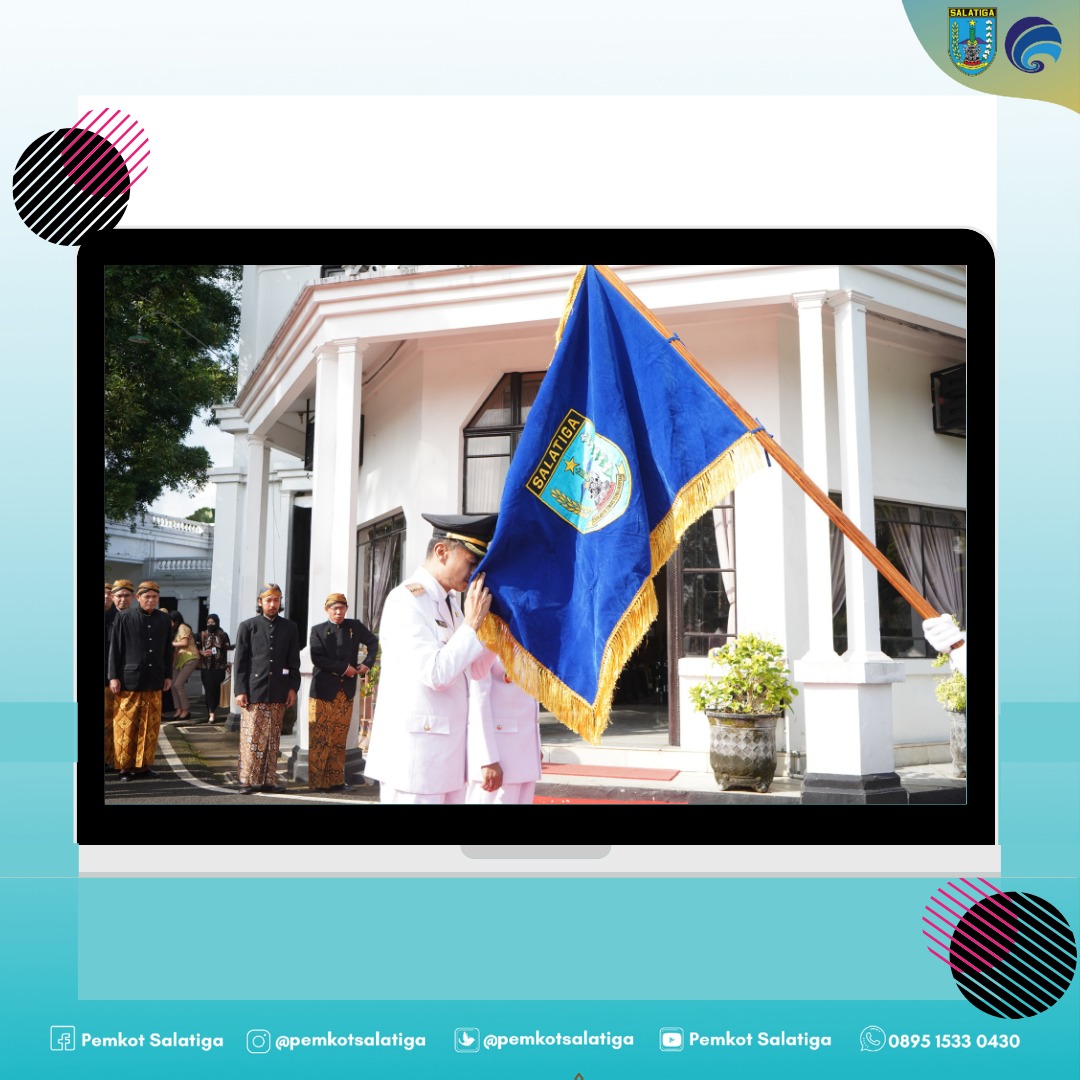 Setelah penyerahan cendera mata, petugas pembawa pataka memasuki lapangan upacara dilanjutkan dengan penghormatan kepada lambang Salatiga “Srir Astu Swasti Prajabyah” sekaligus mencium bendera Salatiga secara bergantian oleh Wali Kota dan Wakil Wali Kota.