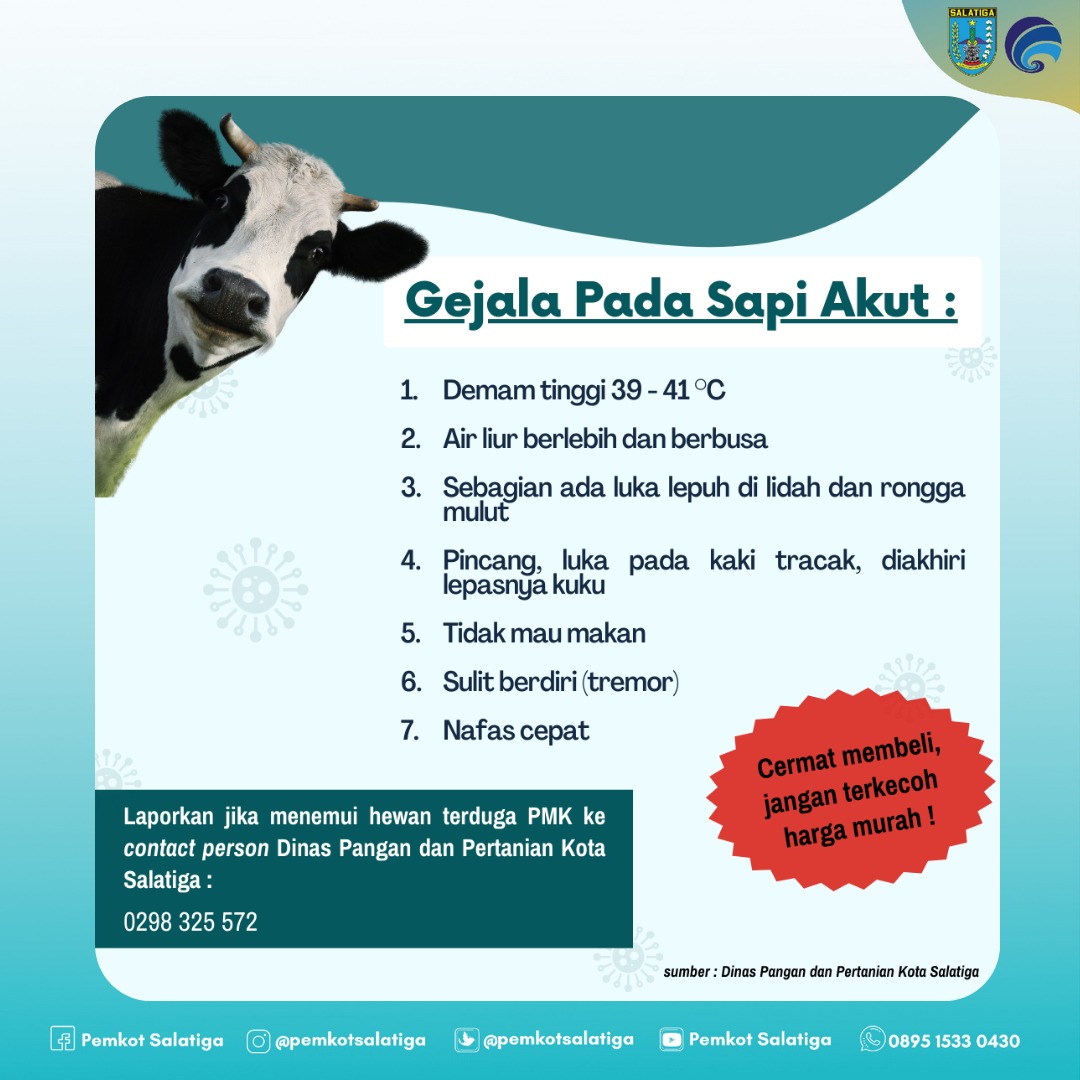 Angka kesakitan ini bisa mencapai 100% dan angka kematian tinggi ada pada hewan muda atau anak-anak. Tingkat penularan PMK cukup tinggi, tetapi tingkat kematian hanya 1-5%. Sehingga jika ditemukan ternak terlihat lemah, lesu, kaki pincang, air liur berlebihan, tidak mau makan, dan mulut melepuh segera hubungi Dinas Pangan dan Pertanian Kota Salatiga ke nomor 0298-325572